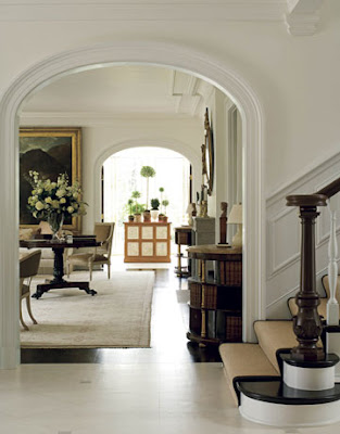 Out of the many foyers that I have seen, these are a few of my favorites. I hope that you will ENJOY my choices. Remember, a foyer is the initial impression of the interior of your home, so much thought should go into planning this area.