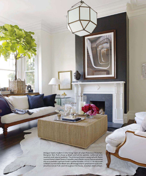 Interior designer Ken Fulk designed this stunning Victorian home in San Francisco. Beginning with the living room, Fulk decorated each room with a black and white color palette, using pops of color here and there.